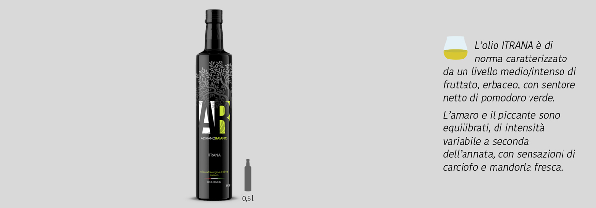 Le varietà di olivo lavorate dall’azienda agricola Raiano sono tipiche del territorio. A oggi, in prevalenza itrana e leccino. In particolare, la cultivar itrana è una varietà autoctona della provincia di Latina. Commercializzata col nome di oliva di Gaeta, è particolarmente apprezzata per il frutto dal gusto inconfondibile, usato sia come oliva da tavola sia per la produzione di olio extravergine d’oliva, caratterizzato da un netto sentore di pomodoro verde. La drupa si presenta sferica, di media dimensione. Alla massima maturazione, il frutto assume una colorazione rosso intenso.